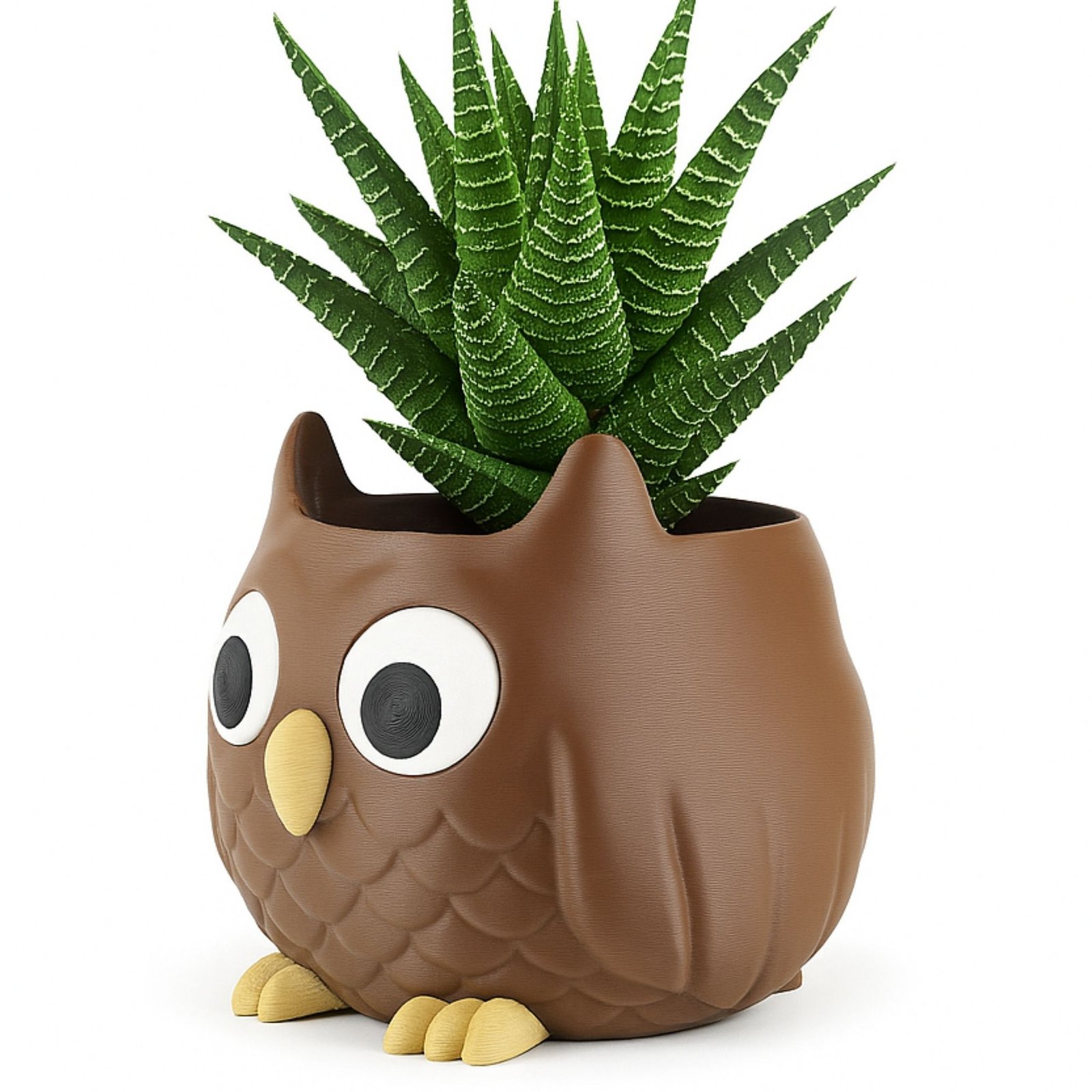 6.1 in Owl Planter Pot with Drainage - Fun Planter Pots for Shelf or Desk