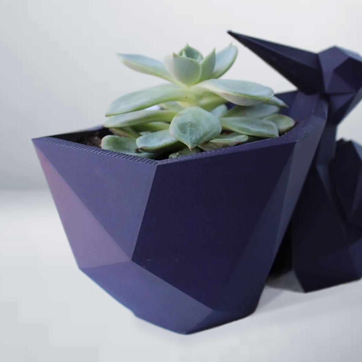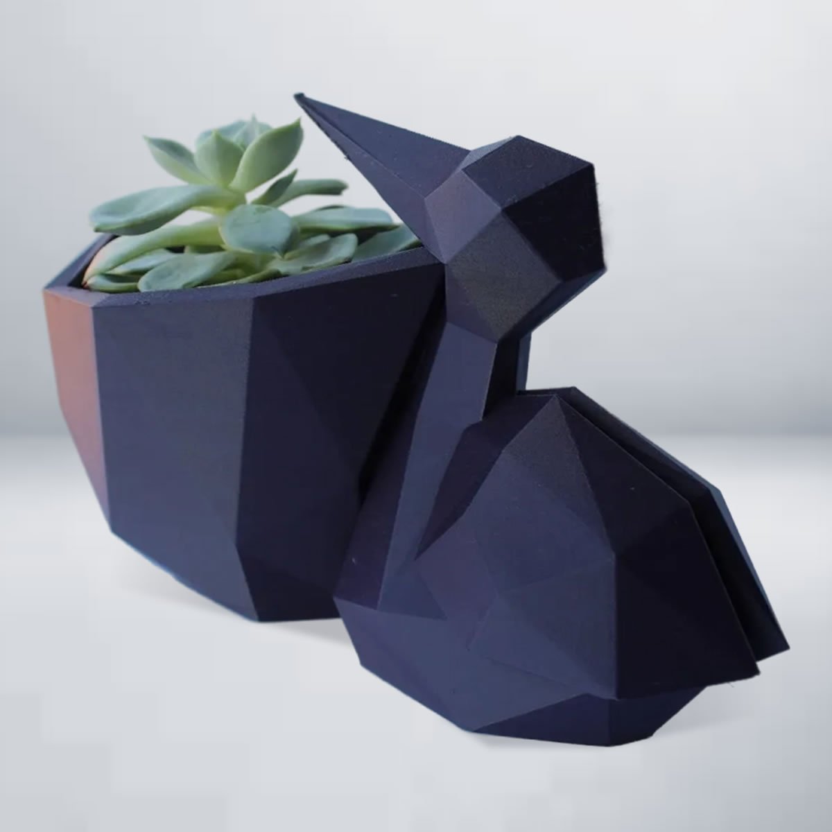 The polygonal succulent stork planter is a striking geometric pot designed to bring a modern twist to plant décor and workspace organization.