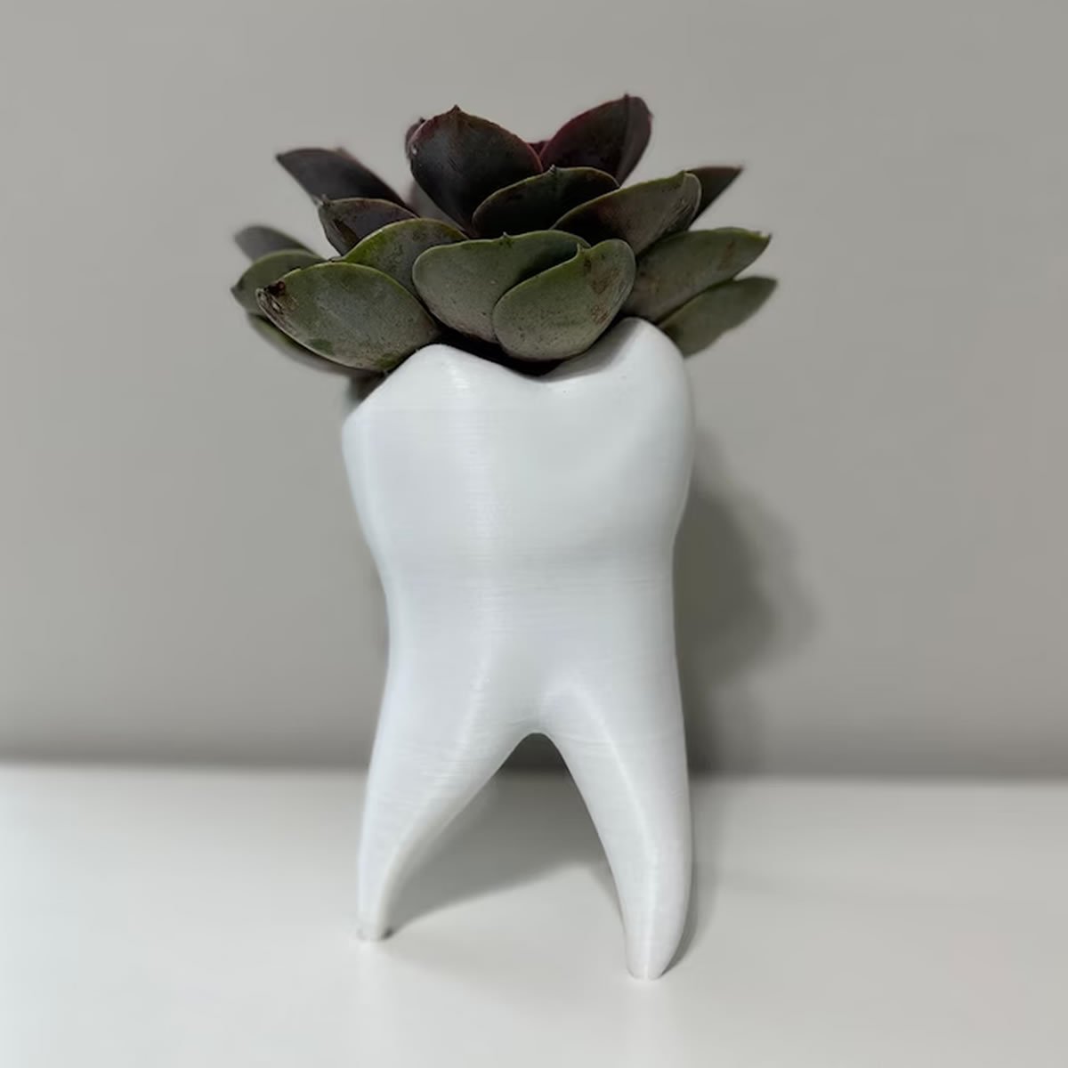 This tooth shape planter adds personality and charm to any dental office, clinic or desk setup With its smooth structure and rounded tooth design it functions as a quirky pen holder or a compact plant pot.